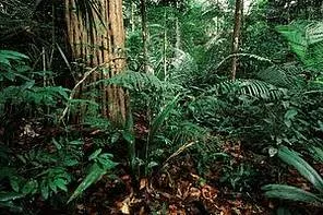 - Sub-Bosque: Um estrato intermediário de árvores jovens, palmeiras e arbustos, adaptados à luz fraca que atravessa o dossel.