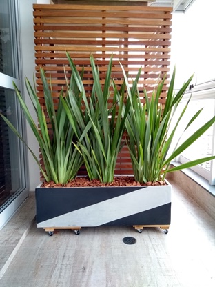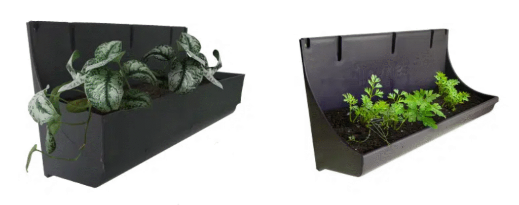 - Estrutura modular de plástico: São compostos por uma sequência de nichos com encaixes para os vasos; é possível adaptar a espaços de diversos tamanhos.